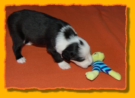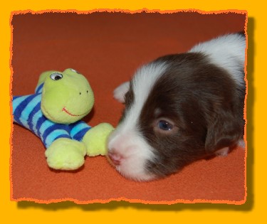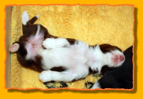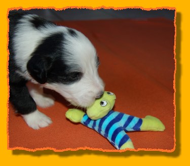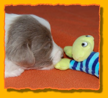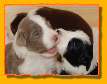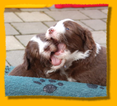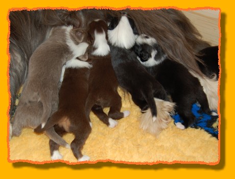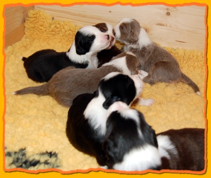 Unsere Rasselbande wächst und gedeiht prächtig. Inzwischen haben wir die Kiste vergrössert, denn es wurde ein bisschen eng für die Mama mit ihren Kindern. Die Kleinen haben damit überhaupt gar kein Problem und verteilen sich gleichmässig. FAYE sieht das ein wenig kritischer, denn sie möchte am liebsten immer alle zusammen haben. Einige von den Kleinen haben schon neue Familien gefunden. Besonders unsere TRINITY ist heissbegehrt, aber schon vergeben. Das gleiche gilt für MIRO, INFINITY, die jetzt PHOEBE heisst, und die beiden schwarzen Rüden. Und nun viel Spass mit den neuesten Bildern: |