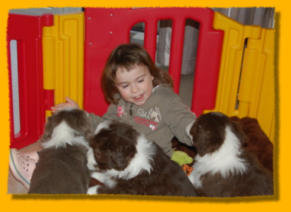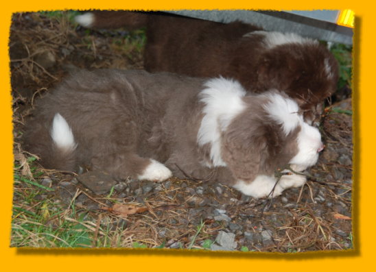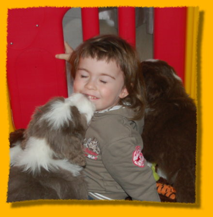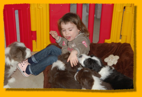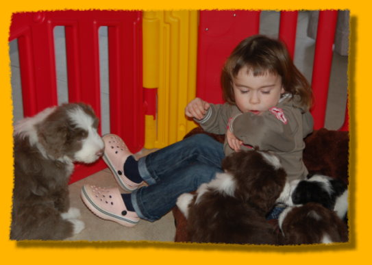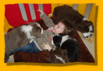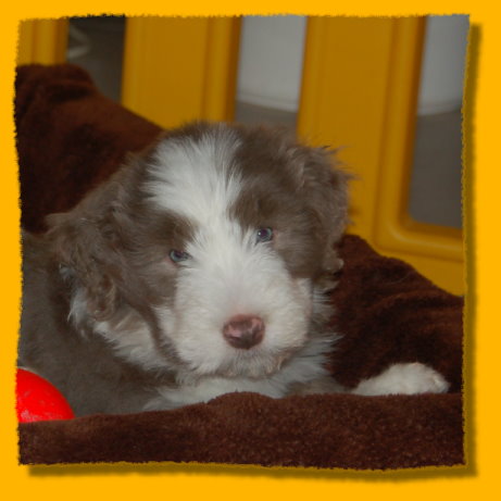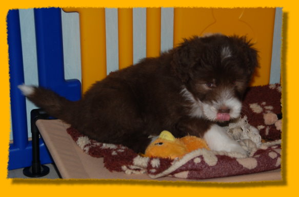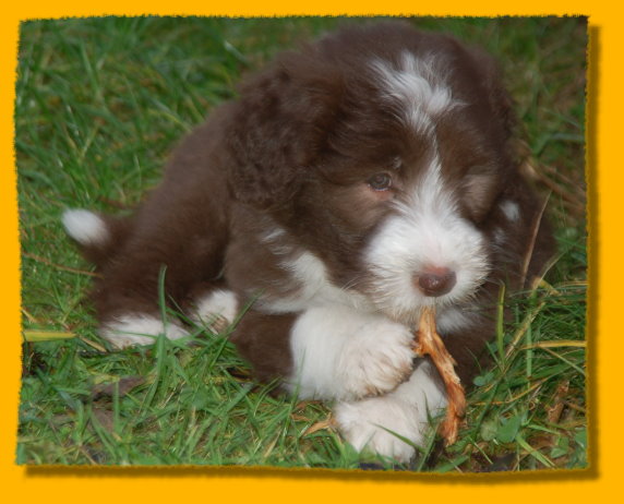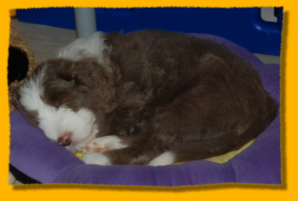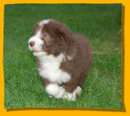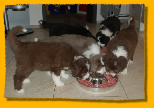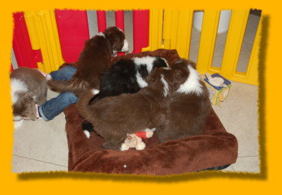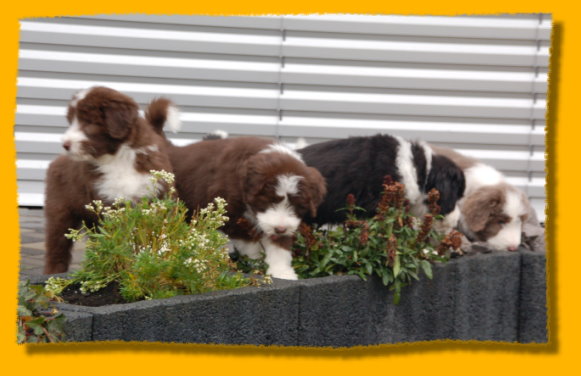 Weihnachten steht vor der Tür und unsere Schätzchen sind schon 7 Wochen alt. Die letzte gemeinsame Woche ist angebrochen und es hat sich viel ereignet. Die Rasselbande ist vom Tierarzt eingehend untersucht worden und im Anschluss wurde geimpft und gechipt. Sie waren alle sehr tapfer, auch Gizmo! Am Montag kommt der Zuchtwart zur Endabnahme und dann können die Kleinen am nächsten WE in ihre neuen Familien ziehen, seufz. “Quite Right” hat nun auch eine tolle neue Familie mit Beardie & Dackel gefunden, nur mein kleiner Liebling “Painty” sucht noch die “Richtigen”. Da das Wetter mal wieder richtig M... war, gibt es viele Bilder die ich im Haus geschossen habe, leider ist die Qualität nicht so gut. Bei den Aufnahmen im Garten hat es teilweise etwas gefisselt, also alles andere als gute Voraussetzungen für tolle Bilder. Die Kleinen finden es trotz des Wetters super spannend immer mehr auf Entdeckungstour zu gehen und dazu geben wir ihnen jeden Tag ausgiebig die Möglichkeit, immer dabei Mercy (die Babies werden immer noch geputzt), Heaven und natürlich Freya! Während ich schreibe liegt Polly auf meinen Füssen... besser als jede Wärmflasche bei meiner Erkältung!